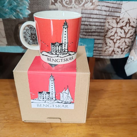 Bengtskär-muki on käyttämätön, täysin ehjä ja alkuperäispakkauksessa. Muki on vuonna 2014 valmistuneesta suljetusta sarjasta ja Arabian valmistama. Valmistettiin aikoinaan 2000 kpl. Lisätietoja mukista löytyy esim. https://majakkamukit.com/tuote/bengtskar-lila/