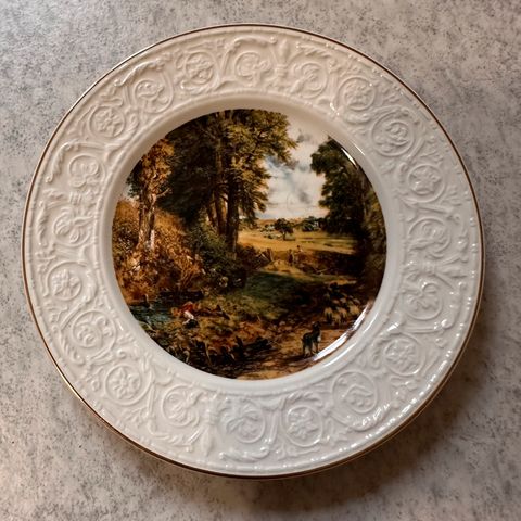 Virheetön, vintage Kettlesprings Kilns Alliance, Ohio koristelautanen 'Cottonwood County Centennial 1870-1970'. Halkaisija 25,5 cm.
