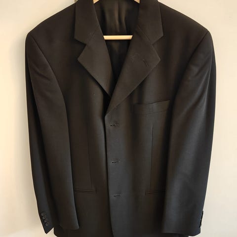 Miesten vaalea Batistini puku, housut ja takki. Koko B52. Käyttänyt L-kokoinen mies.