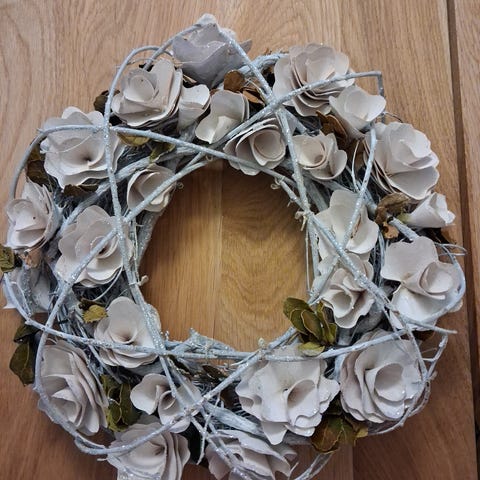 Myydään kesäkuussa ostettu ovikranssi toisen tieltä. Tehty käsityönä ja myyjä sanoi kranssin kestävän vuosia hyvänä. Kukat ja lehdet eivät tipu ja pitää ryhtinsä. Ovh 40€, myyn tämän 18€:lla.