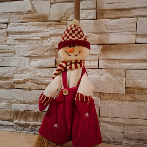 Lumihiutale lumikola, jossa on puinen kahva ja sininen terä. Terässä on luminen talvimaisema, jossa on lumiukko ja lintu. Soveltuu erinomaisesti lumen siirtämiseen pihalla tai ajotiellä.