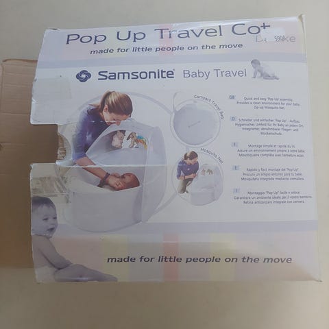 Myydään hyväkuntoinen Samsoniten Pop Up Travel Cot -matkasänky vauvalle. Tämä kevyt sänky sopii n. 0-9 kk ikäiselle vauvalle. Se mahtuu helposti mukaan mille tahansa matkalle, sillä kokoon pakattuna sen koko on 27 cm ja paino 0,8 kg. Sänkyä voi käyttää myös auringonsuojana/telttana rannalla. Sänkyyn kuuluu puuvillainen patja ja hyttysverkko.