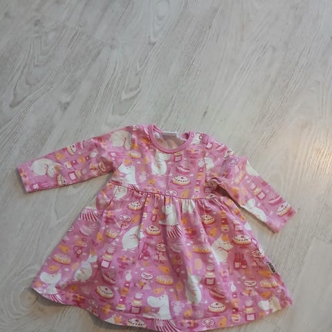 Muumi bodymekko. Koko merkille ominaisesti reilu 56, menee vielä jonkin aikaa koossa 62. Meillä ehti kerran käyttöön.