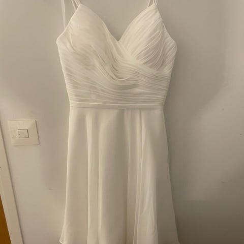 Koko 34, menee Xs-S kokoiselle. Nyörityksen ansiosta mekon koossa on liikkumavaraa.