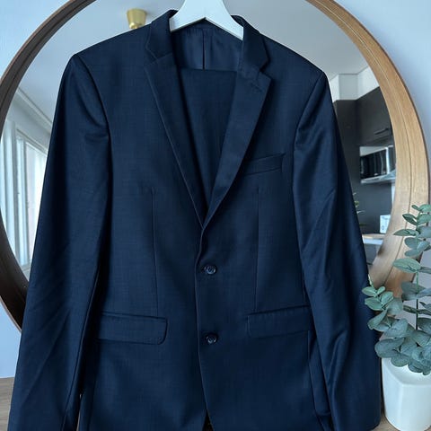 Myydään muutaman kerran käytetty Turon 48-kokoinen (S) slim-fit leikattu, kanervan/purppuran värinen puku. Mukaan tulee myös kokonaisuuteen sopiva taskuliina (kuvakollaasissa mukana). Puku on tehty Marlanen kankaasta. Puku on vuorellinen.