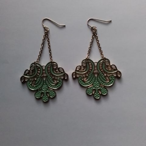 Näyttävät koristeelliset korvakorut hopean ja tumman liilan värissä, pituus koukun kanssa 5cm.
