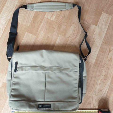 Laukku on ostettu 2013 Alcatrazin vankilasta siellä käydessäni. Laukun takapuolelle liimattu kaksi wacken festivaalin kangasmerkkiä. Näkyy kuvissa. Vaikuttaa farkku materiaalilta. Ollut aikanaan käytössä, mutta ei enää moneen vuoteen. Sisällä taskuja ja ulkona taskut. Vetoketju kiinnitys. Laukkuun mahtuu hyvin tavaraa sisälle. Esim. Lentokoneessa käsilaukkuna myös tilavuuden vuoksi ollut kätevä ja festareilla käydessä, sisälle mahtunut, sateenvarjo, villa- ja sadetakki ja paljon muuta. Ryhdikäs ja tilava laukku. Muoto tuo tilaa. Kaulahihna säädettävä ja mukavan leveä.