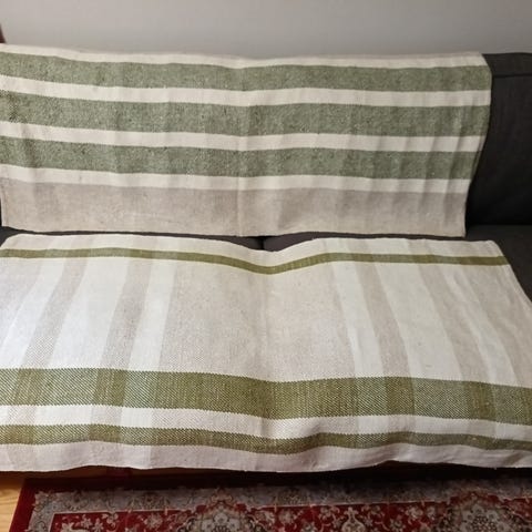 Pellavapöytäliina tai - pyyhe 7 euroa kpl. Uudet. Ruudullisen mitat ovat 67 x 126 cm ja raidallinen 65 x 130 cm. Tukevaa, kudottua pellavakangasta. Voin lähettää. Mmm.