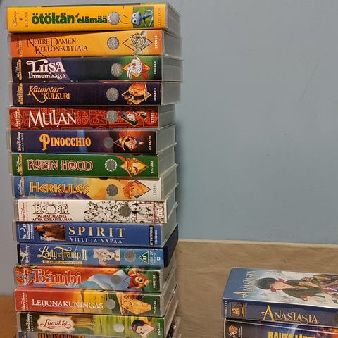Myydään pakettina koko perheen VHS-elokuvia. Näillä on ylläripylläri ikää jo aika reilusti ja monet olen saanut lapsena - keräilyharvinaisuuksia? xD Esim. Bambissa vielä vanhat kunnon dubbaukset. Tästä taloudesta ei löydy enää VHS-soitinta, joten en ikävä kyllä pysty tarkistamaan toimivuutta. Tämä huomioitu hinnassa, saa myös tarjota. Taloudessa kissa ja koira.