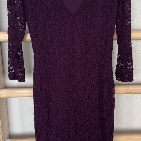 Vähän käytetty kaunis pitsimekko. Mekossa on trikoinen alaosa, jonka päällä on kaunis kukallinen pitsi. Mekon kainalo-kainalomitta on noin 47 cm. Mekon kokonaispituus on noin 100 cm.