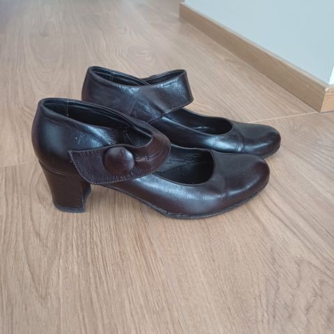 Kahdet mustat käytetyt, mutta vielä aivan käyttökuntoiset naisten nahka avokkaat korkokengät korkkarit kokoa 37