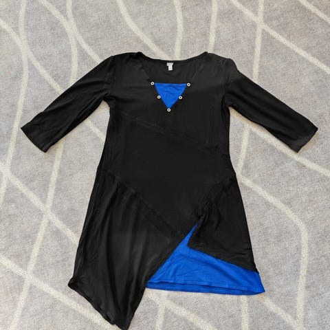 Kaunis rypytys edessä. Koko M. Pituus noin 78 cm eli pitkä tunikamainen hihaton pusero tai lyhyt leninki / minimekko. Käyttämätön, laput kiinni, mallikappale, ei materiaalitietoja, kangas vaikuttaa joustavalta, joten olisiko puuvillaa, trikoota tms.