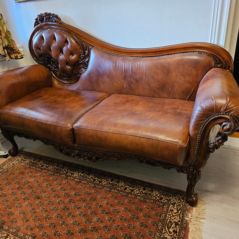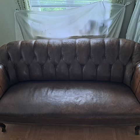Nahkasohva, ikäänsä nähden hyväkuntoinen antiikki nahkasohva