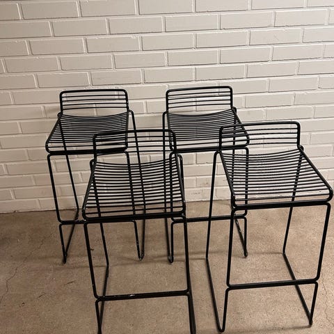 HAY AAS38 baarituolit 75cm 2kpl. Toisessa tuoleista isoja naarmuja istuinosassa, katso kuvat. Myös toisessa jälkiä. Tuolit on kulumista huolimatta siistit ja käyttökelpoiset.