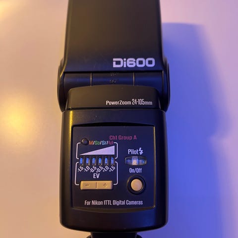 Hyvässä kunnossa oleva Nissinin vanhempi lippulaivasalama Nikonille. Pientä normaalia käytönjälkeä ulkopinnoissa.