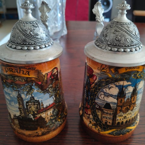 Kuvanmuset, ei myydä erikseen. Korkeus n. 15cm, suuaukko 7cm. Sisäpinnan lasite hieman kärsinyt. Olleet itsellä koristekäytössä.