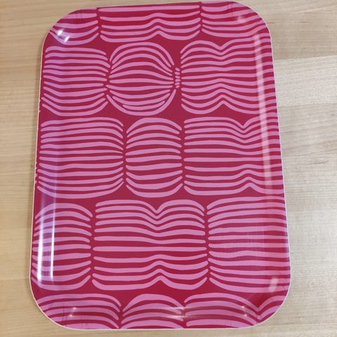 Pentikin pajuviilusta valmistettu tarjotin. Viilupinassa ei yhtään käyönjälkiä, takapuolella pientä jälkeä (katso kuva).