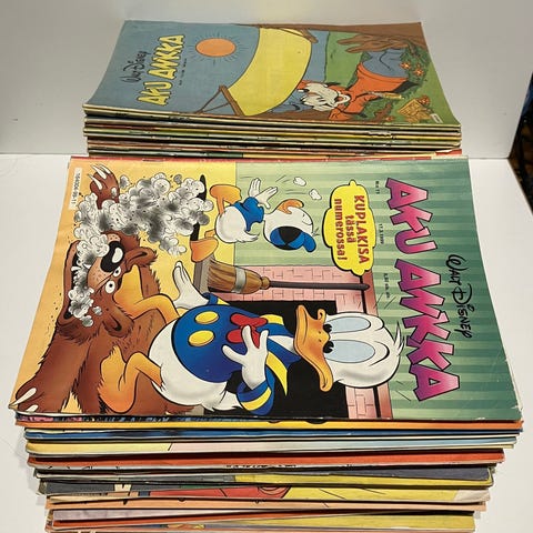 Myydään 9kpl vanhoja Akkareita. Osa lehdistä on vähän huonokuntoisempia, kysy rohkeasti, jos haluat lisäkuvia ennen ostamista.