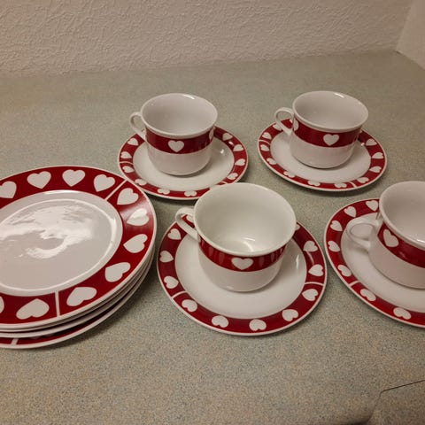Myydään hyväkuntoinen kahviastiasto 10 hengelle, hinta 5 euroa. Settiin kuuluu 10 kuppia, 10 kahvilautasta, kermakko ja sokerikko.