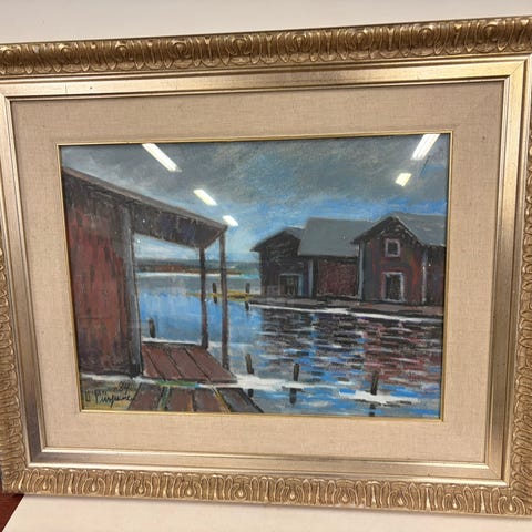 Tunnelmallinen työ -Jäiden lähtö. Pastellityö? -paspis ja lasi. Kehyksessä pari kolhua, yleisilme siisti. Kauniit värit ja hyvä tunnelma! Vaikea kuvattava, kun lasi heijastaa. Koko kehyksen ulkomittojen mukaan 64,5 cm x 51,5 cm. Nouto sovitusti Espoon Leppävaarasta.