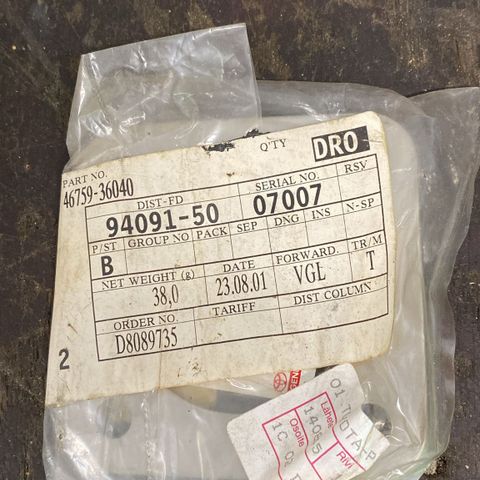 Myydään Toyotan uusi ja alkuperäinen osa, osanumero 12195-70010 (GASKET, OIL FILLER,