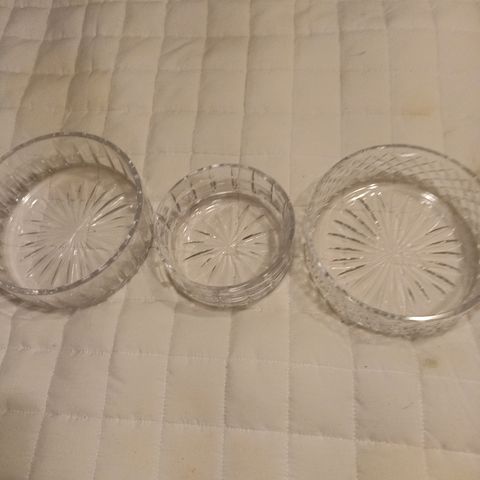 2kpl.setti kristallinen kulhot paksut halkaisija 15×11cm kor.8cm pohja 8×8cm halkaisija 13×13cm kor. 6,5cm pohja 7×7cm .Vain nouto ja käteinen maksu Vantaa-Pakkala.