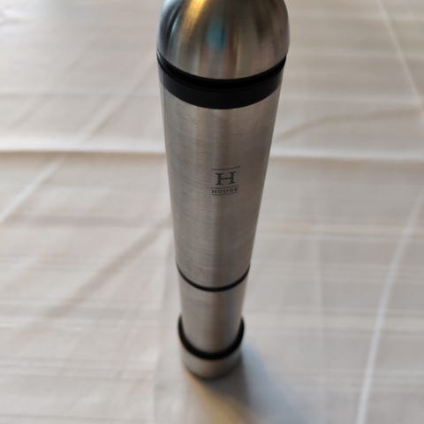 Myydään muutaman kerran käytetty vaahdotin ja metallinen sekoituskuppi mitta-asteikolla.