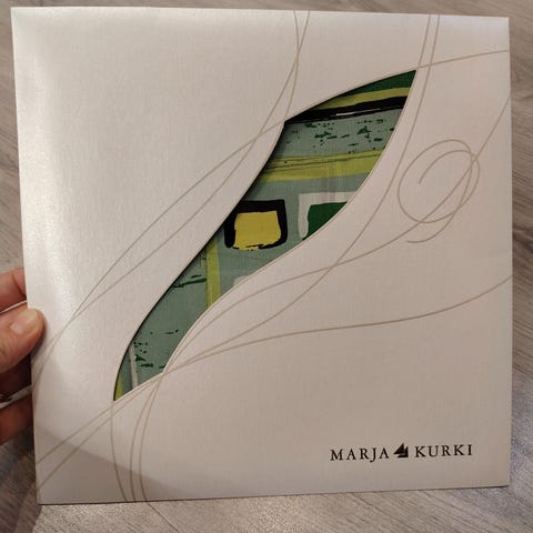 Kaksi Marja Kurki -huivia ja yksi tekstillä Gres Paris. Kaikissa on käytön jälkiä. Muutamia haaleita tahroja, jotka ei lähteneet varovaisessa pesussa, näkyvät kuvissa. Neliömäisessä Marja Kurjen huivissa on enemmän tahroja, joten se tulee kaupan päälle.