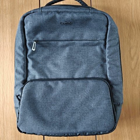 Repussa on selkälokero joka vetää 14" läppärin. Etutaskut 2kpl ja sivutaskut.