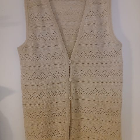 Neuleliivi kukkakuvioilla, väri valkoinen. Koko L.