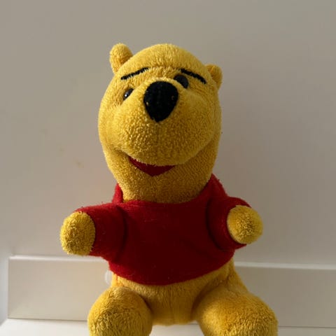 Pieni Nalle Puh -pehmolelu. Ihanan nostalginen ja pehmoinen kaveri. Vanha, mutta täysin ehjä ja hyväkuntoinen.