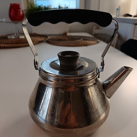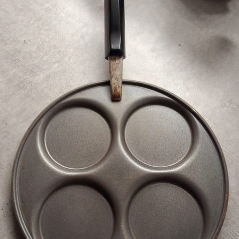 Kevyt, teflonpinnoitettu lettupannu neljälle letulle. Irrotettava kahva. Pannun halkaisija 23 cm. Käytetty, mutta edelleen hyvässä käyttökunnossa eikä esimerkiksi pinnoitteessa ole sanomista.
