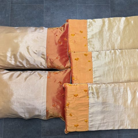 Tosi ohut matoksi. Voi sopia seinävaatteeksi tai pöytäliinaksi. Muuten hyvä, mutta osa hapsuista puuttuu. Pesty koneessa. Noin 64 x 104 cm. Postitus (7e) tai haku.