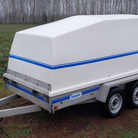 Hyväkuntoinen ja vähän käytetty kärry kipillä. valot toimii. Kuomu ehjä. Lavan sisämitat 263×125cm