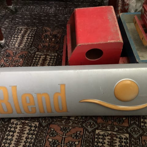 Myydään kuvanmukainen iso 1960 luvun kodinkoneliikkeen ikkunamainos.koko 130 cm× 70 cm× 1,5 cm.