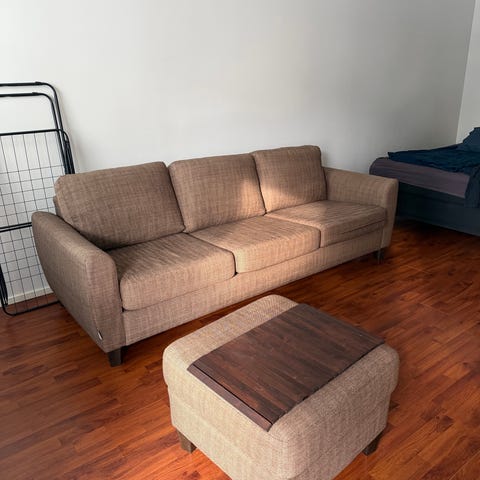 Siisti sohva joka nyt etsii uutta kotia tilanpuutteen takia. Väri on valaistuksesta riippuen vähän tummempi beige kuin kuvassa.