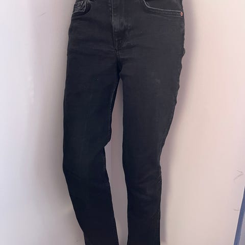 Mustat puuvillafarkut, koko 158cm, Skinny fit, hyväkuntoiset (polviin kuuluu reiät & yksi housuihin kuuluva pieni palkeenkieli myös reidessä. Joustavat, vartalonmyötäiset.