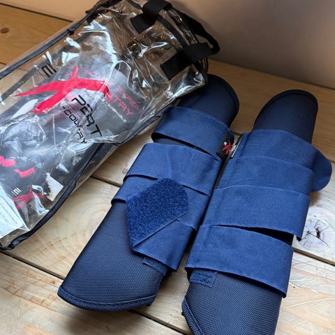 Myydään uudet Prestige Dinafit ruskeat takajalan suojat. Koko L.