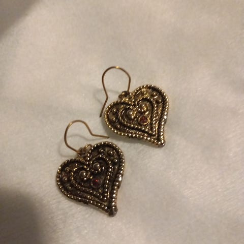 Korvakorut Sydämmet nasta malli kullanväriset päällä kimaltavia kiviä jalokivijäljitelmää mitat 15 x 15 mm korvakorut on käyttämättömät uudenveroiset korupussi tulee mukaan kulkeutuu sovittaessa lähialueelle + postitus yht 17 eur