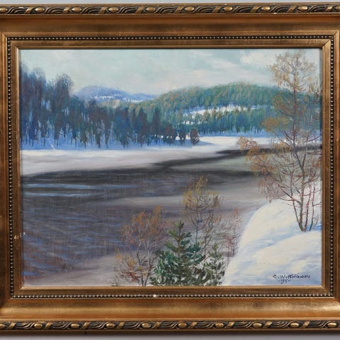 Ohessa Väinö Laurimon kaunis talvimaisema vuodelta 1964. Kehysten koko on 78 x 62 cm. Hp. 30 eur