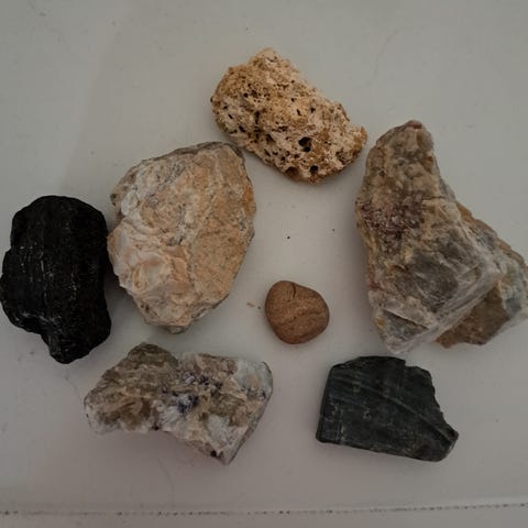 3kpl uusia mineraalien lataukseen ja purkuun valmistettua mursketta vuorikristallista ja hematiitista. hinta 5€ per purkki, myynnissä 3purkkia. Purkissa n. 250g kiviä.