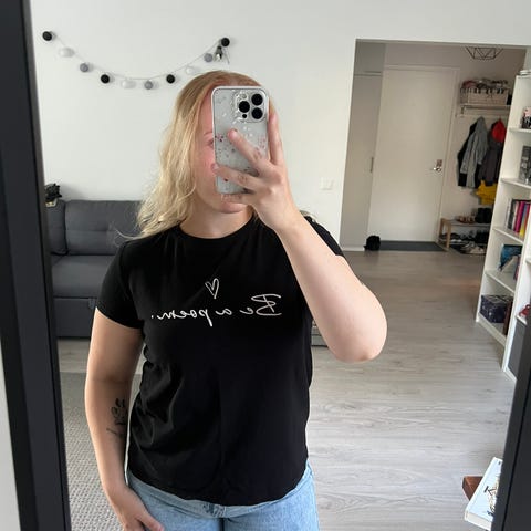 Uusi naisten t-paita, v-kaulus, strassikoristeet, biker babe.
