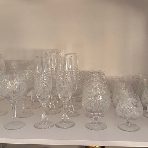 Lasin korkeus 22,5 cm, H 5 cm. Hinta 120€, vain nouto