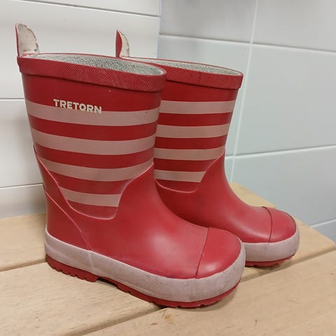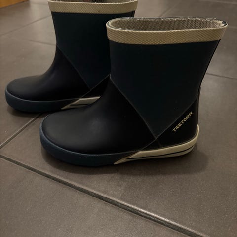 Tretornin lasten kumisaappaat koossa 27. Näitä kovasti käytetty ja tummentuneet kirkkaan värin vuoksi. Ehjät ja käyttökelpoiset seuraavalle käyttäjälle. Hp. 5 e ja nouto Lievestuoreelta.
