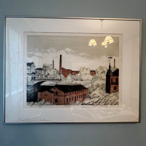 Veikko Stålhammar B 1/1 taitelijavedos mitat kehysten päältä korkeus n.32cm leveys n.23cm kuva-ala n.19x14cm