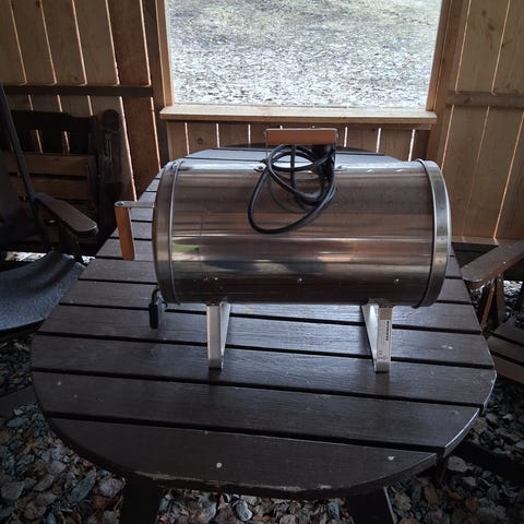 Aito ja alkuperäinen Muurikka.Max 5 kertaa käytetty savustin. Tehokas 1200w vastus+"ilmanvaihtoräppänä". Uusi vastaava 329,00eur. En lähetä.
