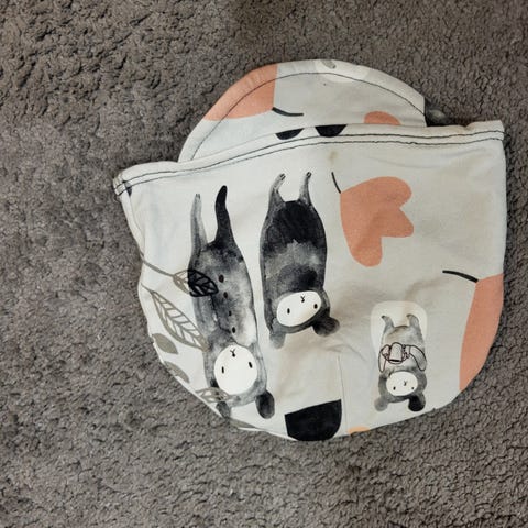 Myydään lasten lippis, ympyrämittä noin 45 cm, suomalaista käsityötä.