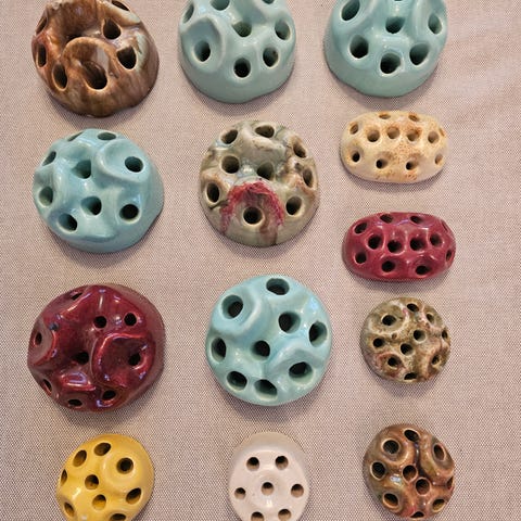 Lieriön ulkohalkaisija 40cm sisähalkaisija 31cm. Korkeus 30cm. Puolikkaissa kolot joiden avulla ne voidaan lukita toisiinsa. Puolikkaan paino n.20kg