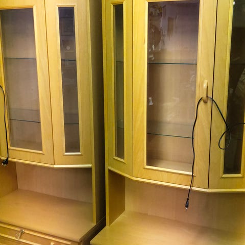 Tästä korkia vitriini moneen käyttöön! Kivat vihreät reunaraidat antaa vauhtia ja sävyä säilömiseen!