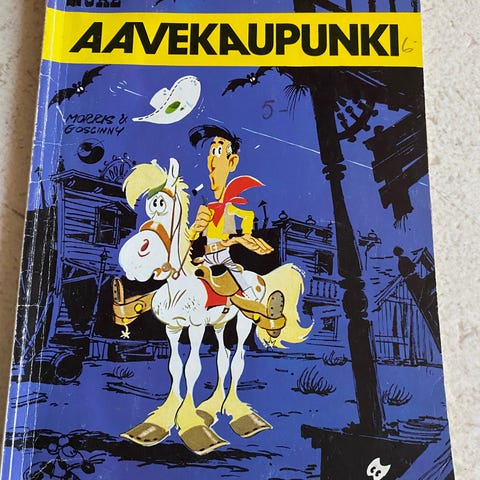 Lucky Luke -albumi Aavekaupunki, 1. painos vuodelta 1975. ISBN 951-1-02037-4. Kunto tyydyttävä, kulumaa kansissa, selän keskellä ja alareunassa muutaman sentin korjaus näkymättömällä teipillä, kansissa ja joillain sivuja joitain tahroja. Katsothan kuvat tarkkaan tarkistaaksesi kunnon. Hinta vain 7 euroa. Kiva tapa saada lapsi lukemaan! Kiva lahjaidea! TORIDIILI: voit ottaa yhdellä ostolla, yhdessä paketissa ja yksillä torikuluilla myös useamman sarjakuvan, KYSY ENNEN OSTOA. Katso muut sarjakuvat hakusanoilla ollin sarjakuvat.